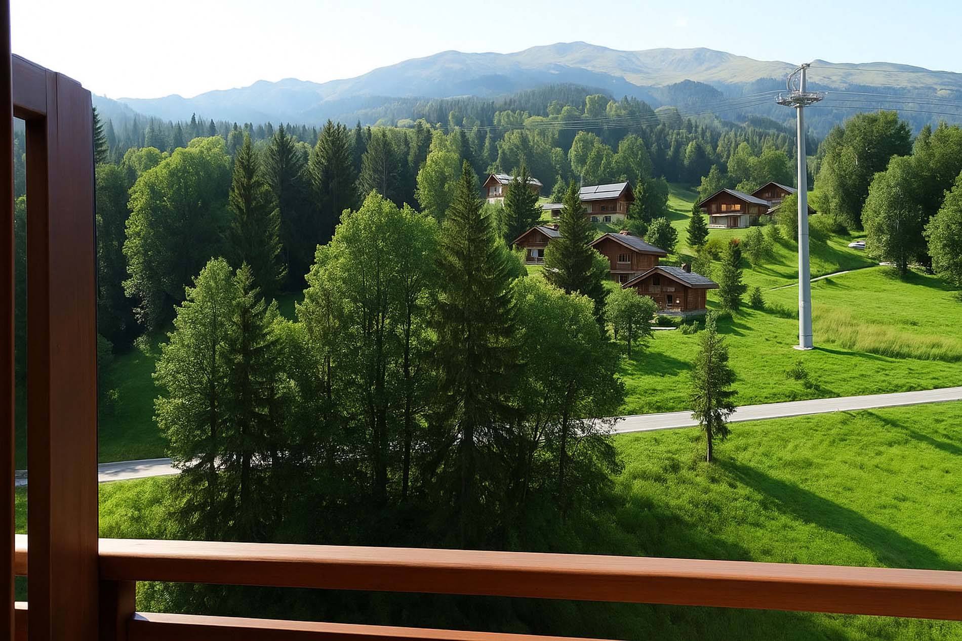 It features a west-facing balcony with lovely views over the woods and pine trees, the perfect spot to unwind after a day on the slopes. Ideally positioned on a lively street with shops, restaurants, and bars right on the doorstep, the residence is less than a 2-minute walk from the nearest slopes, ensuring easy access to the ski area.