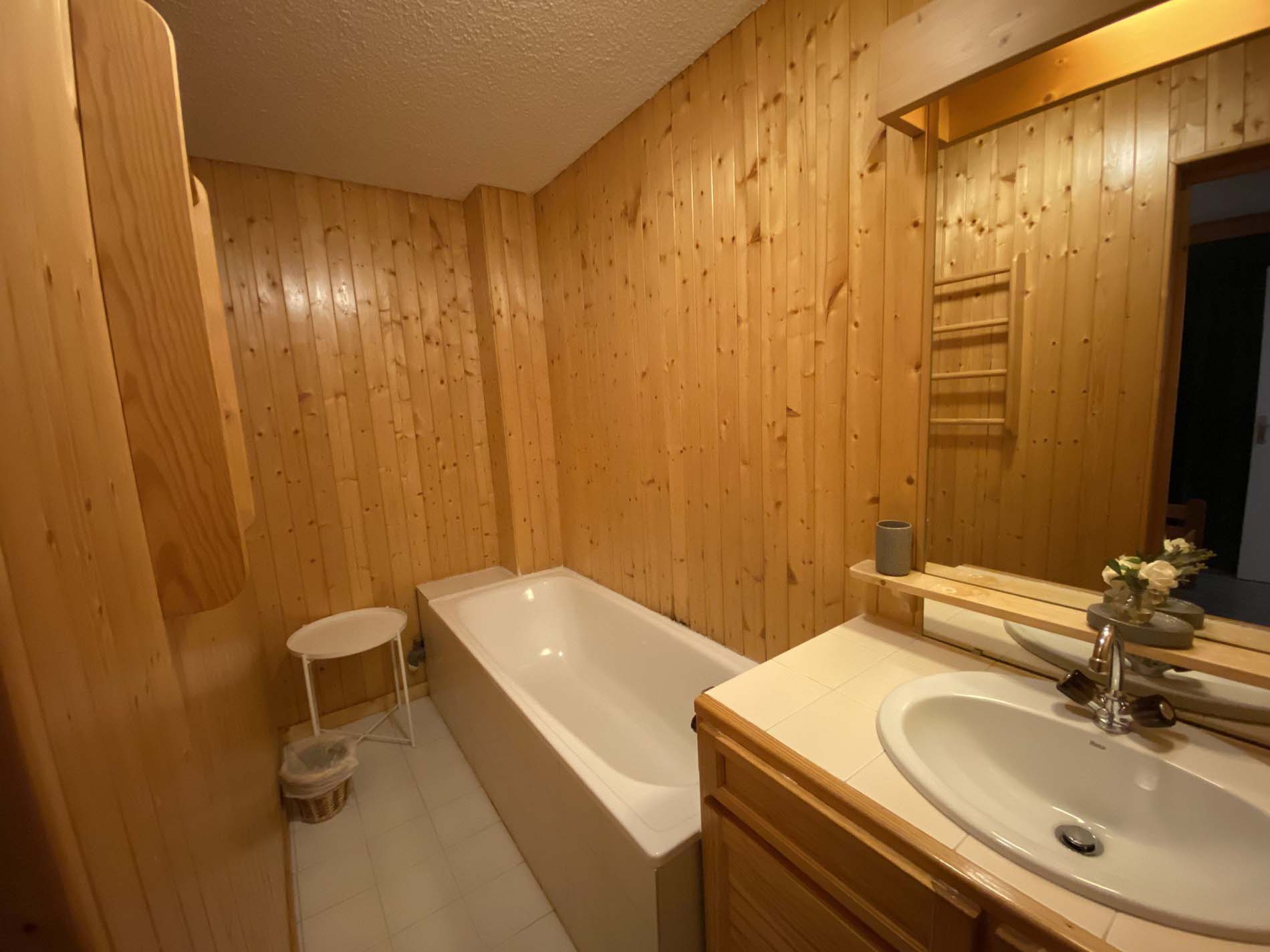 Bedroom 1: Twin beds and ensuite bathroom with bath and wash basin.