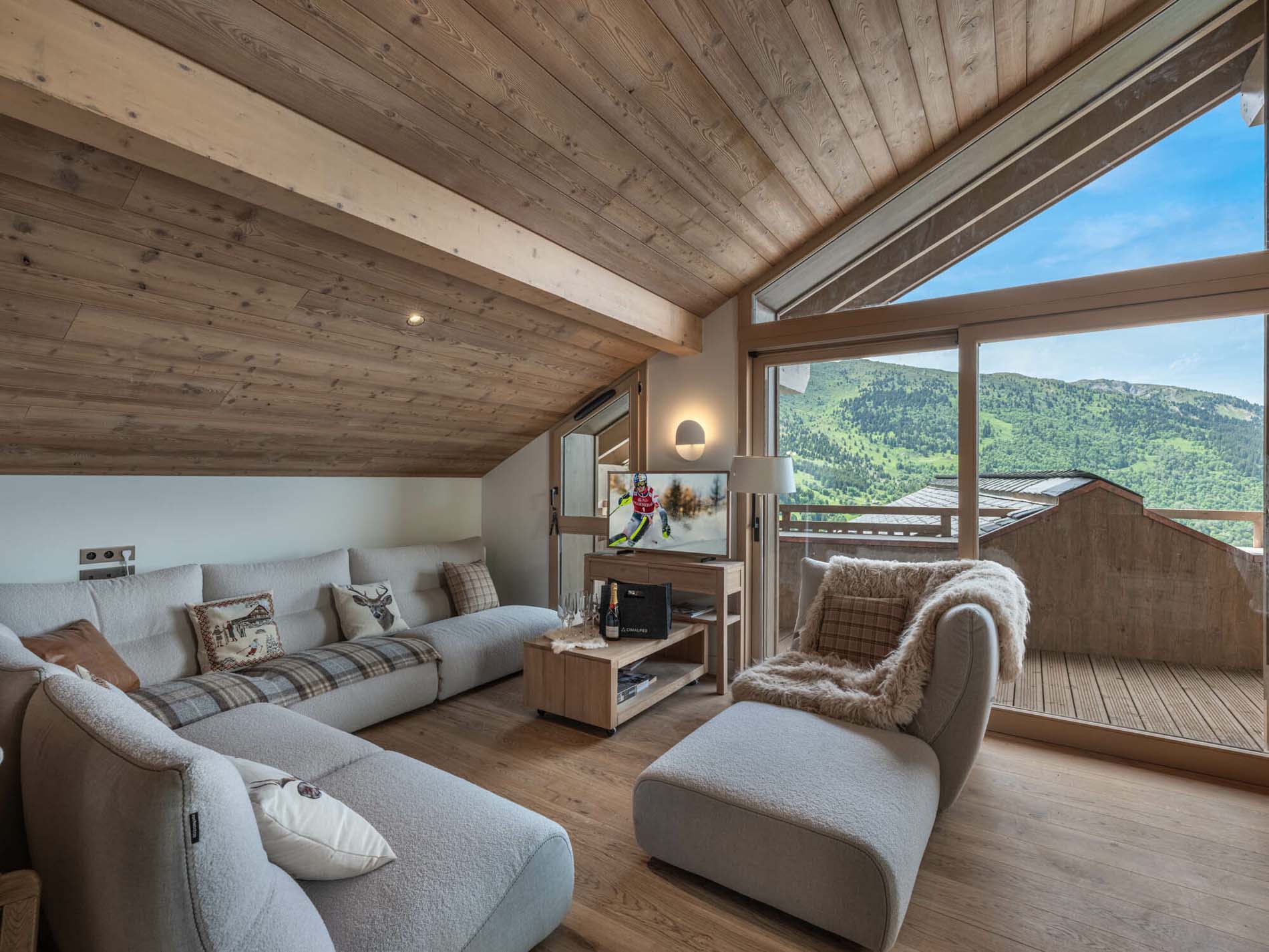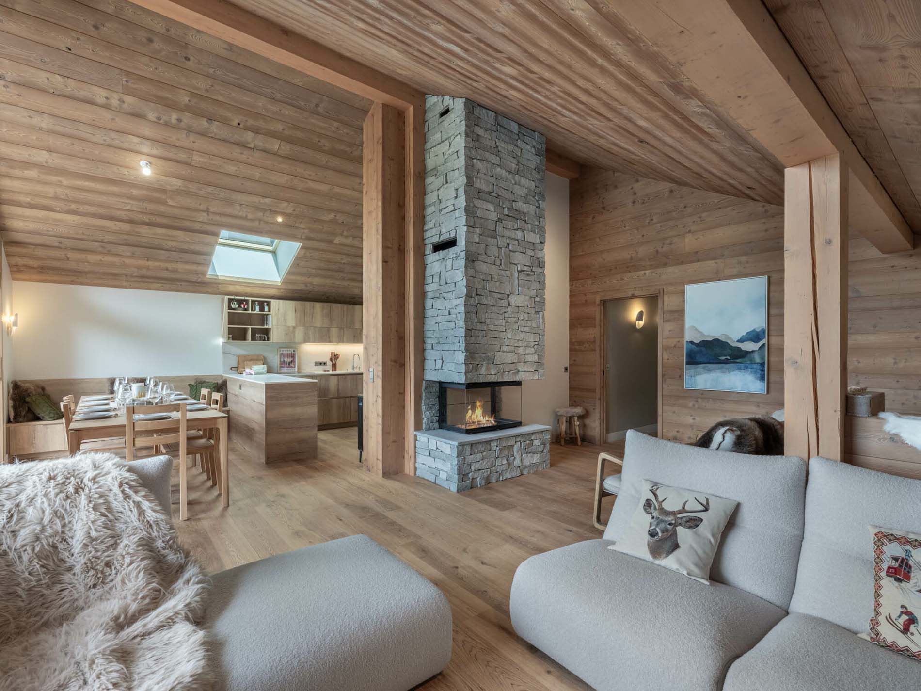 After an exhilarating day on the slopes, unwind in the light‑filled living area, where a crackling fireplace and sweeping valley views create the perfect après‑ski atmosphere. Comfortably sleeping up to 10 guests, it’s an ideal base for families and friends alike.