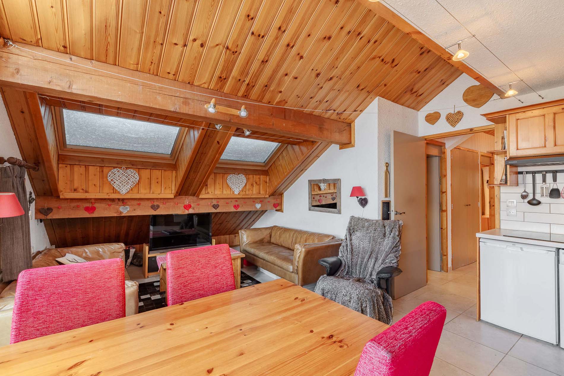 Located in the sought-after Altitude 1600 area of Meribel, this charming 44 m² apartment can accommodate up to 6 guests and is located on the first floor of a residence without a lift. It features a west-facing balcony with lovely views over the mountains and the street, perfect for enjoying the alpine scenery.