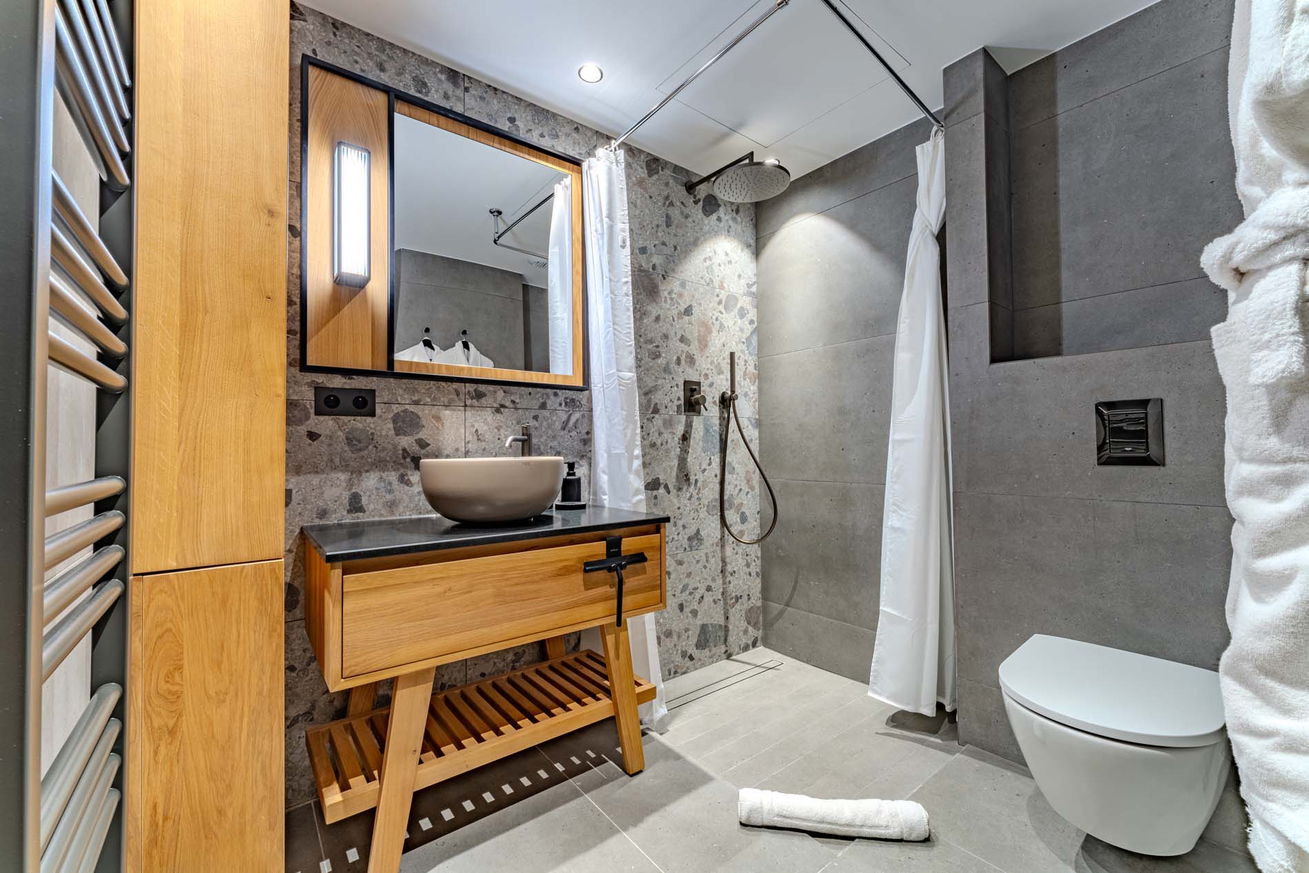 - Bedroom 1: Queen-size bed and en-suite bathroom with shower, wash basin and WC