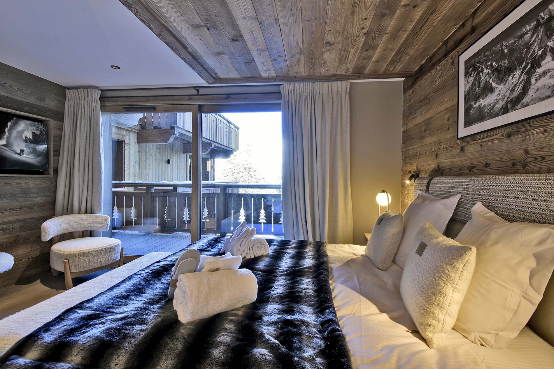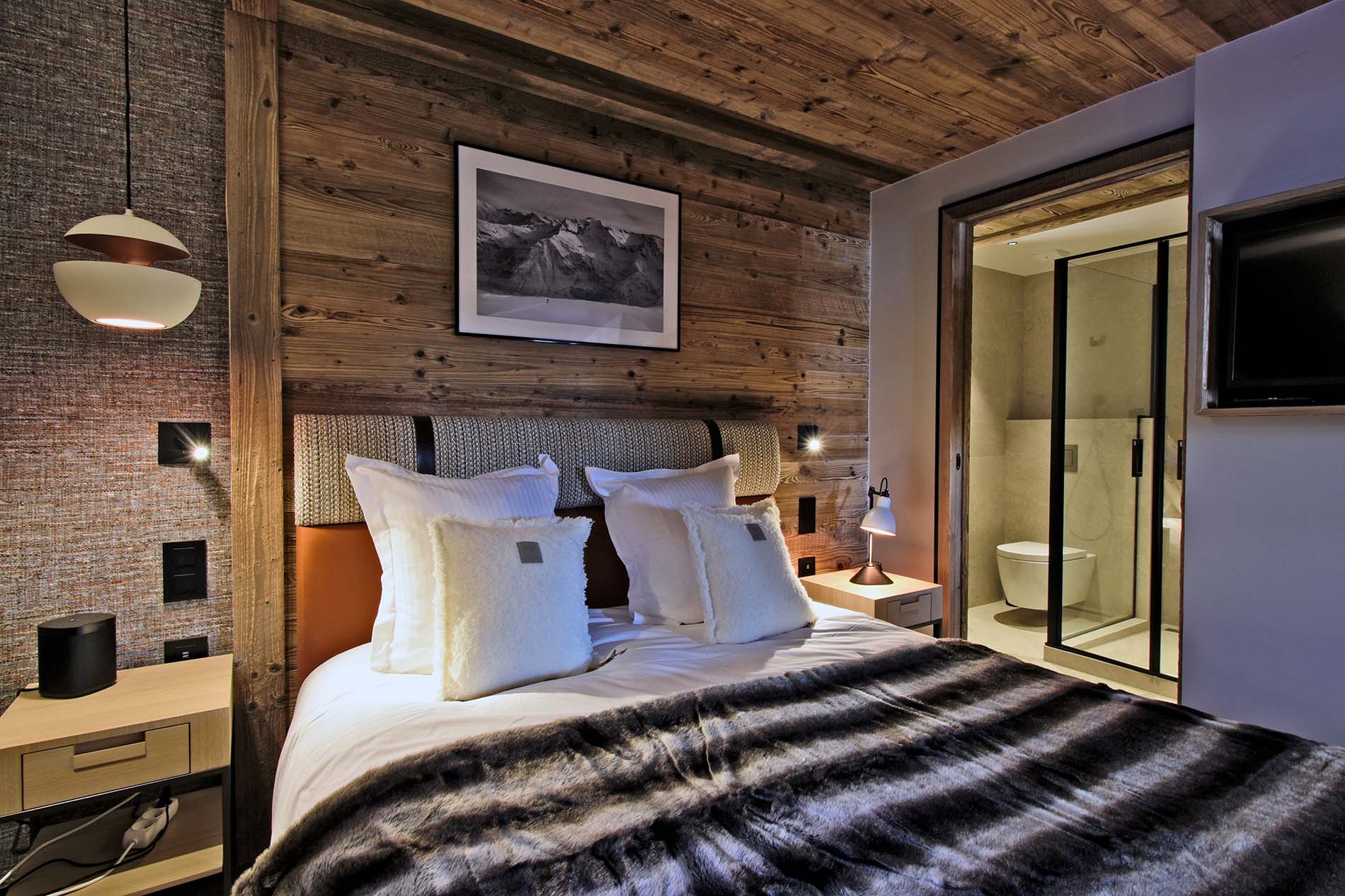 - Bedroom 1 : Double bed, balcony and ensuite bathroom with bathtub, shower, washbasin and WC.