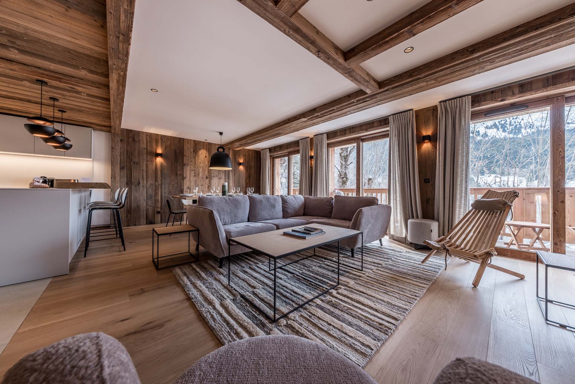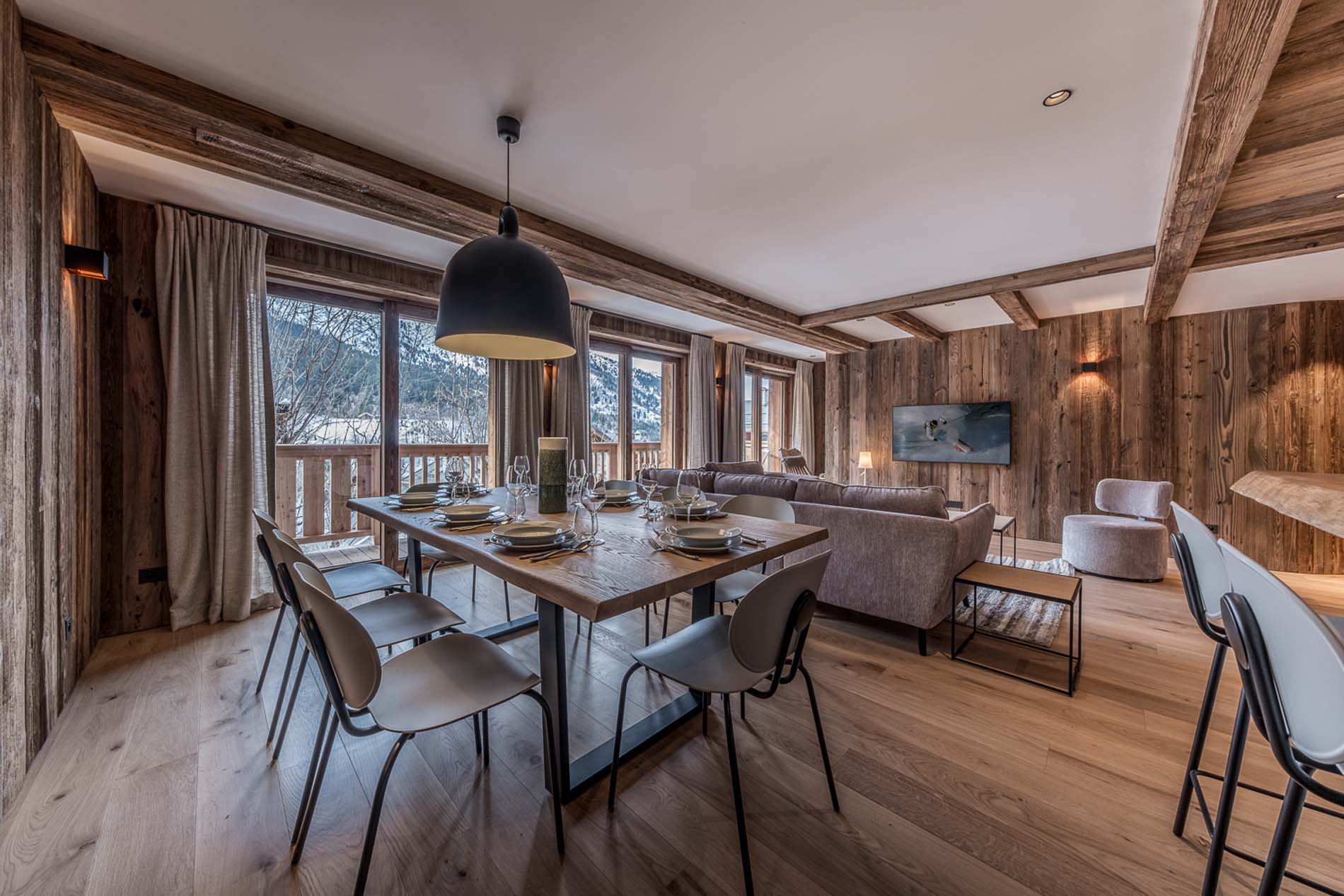 - Living and dining room with a view of the mountains