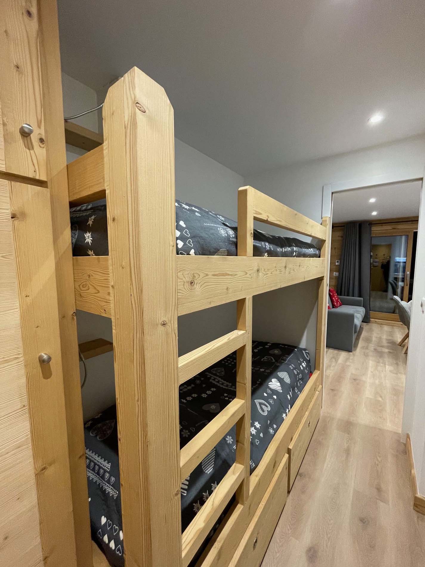 - A sleeping area with a set of bunk beds (the upper bed is not suitable for children under 6)