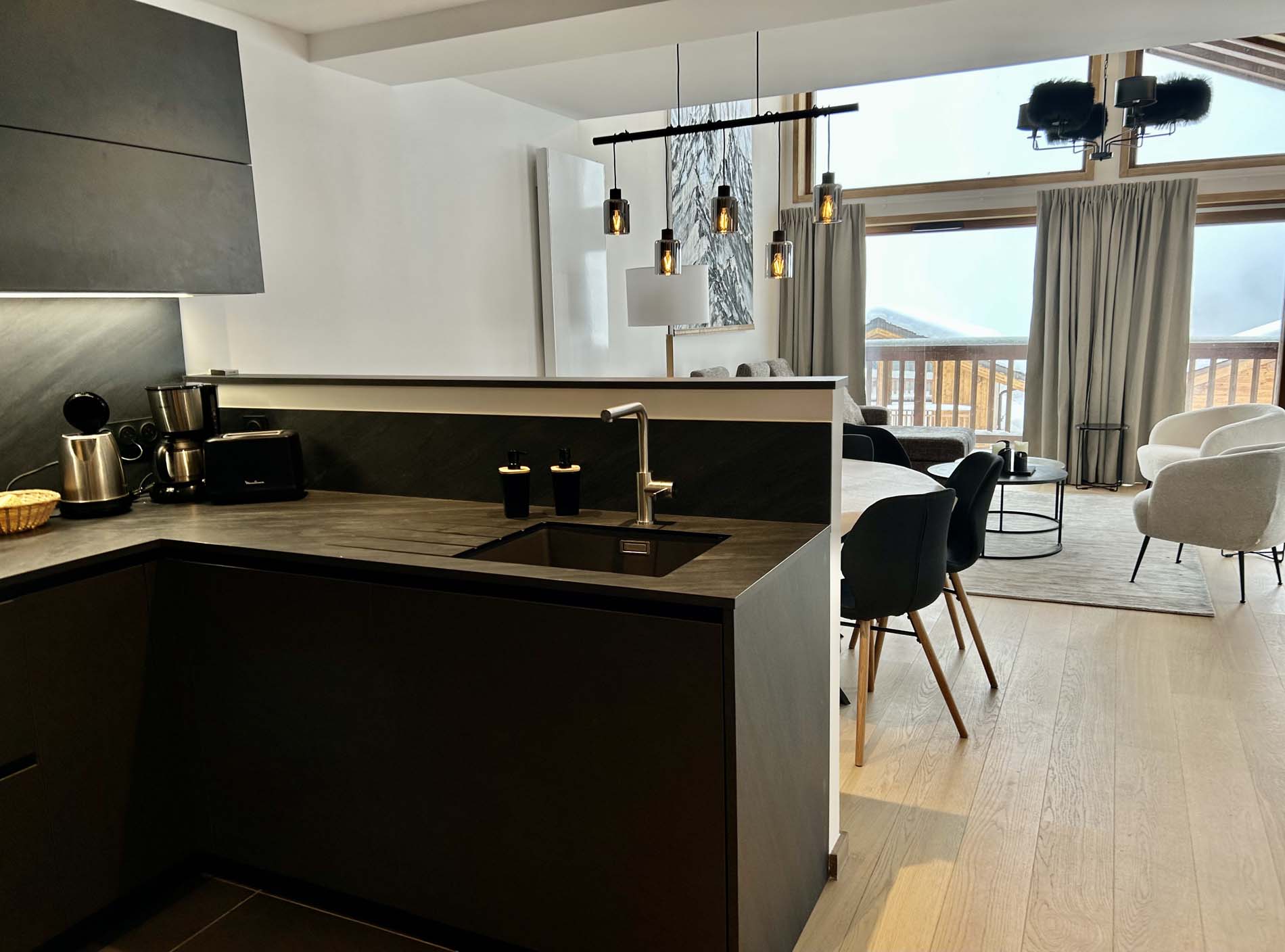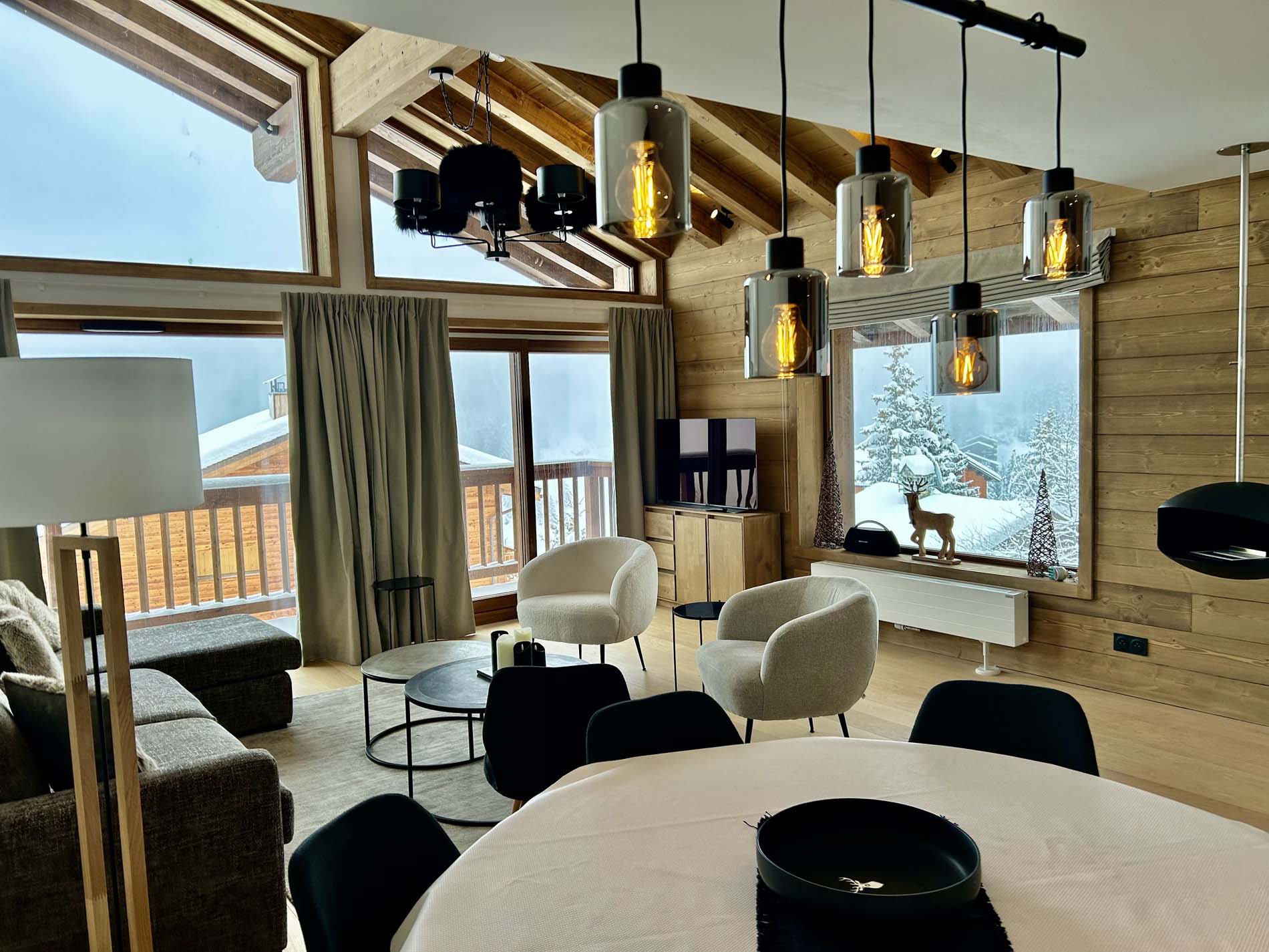 This stunning new apartment spanning 91m², features modern, tastefully appointed décor, accommodating up to 6 people comfortably. With a spacious living room, it offers a breathtaking vista of the valley and the iconic Saulire mountain.