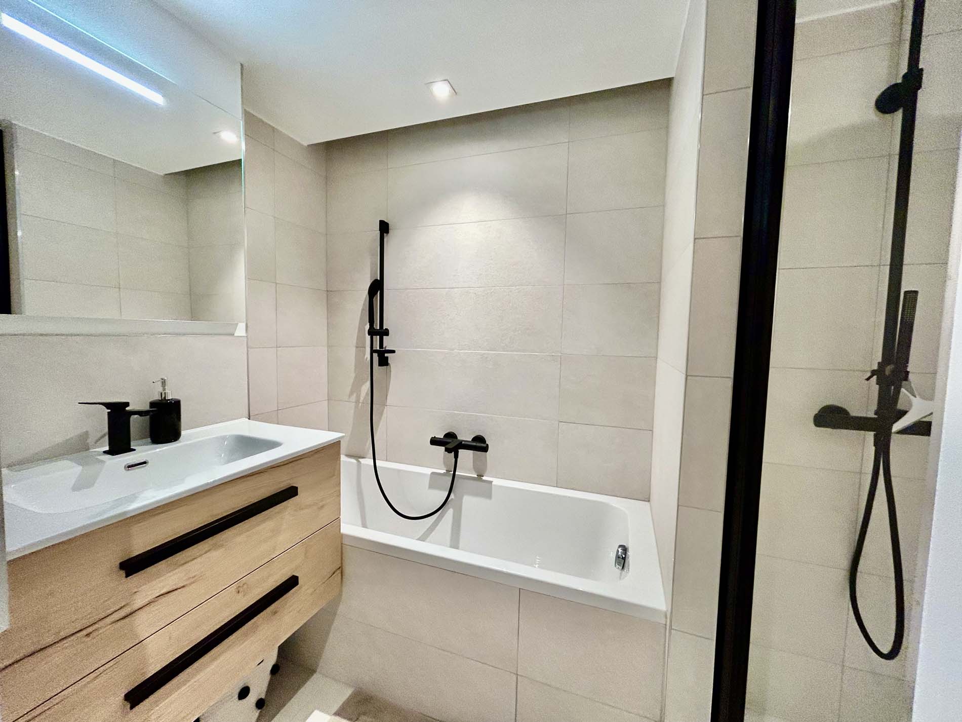- Separate bathroom 1 with bathtub, shower and washbasin.