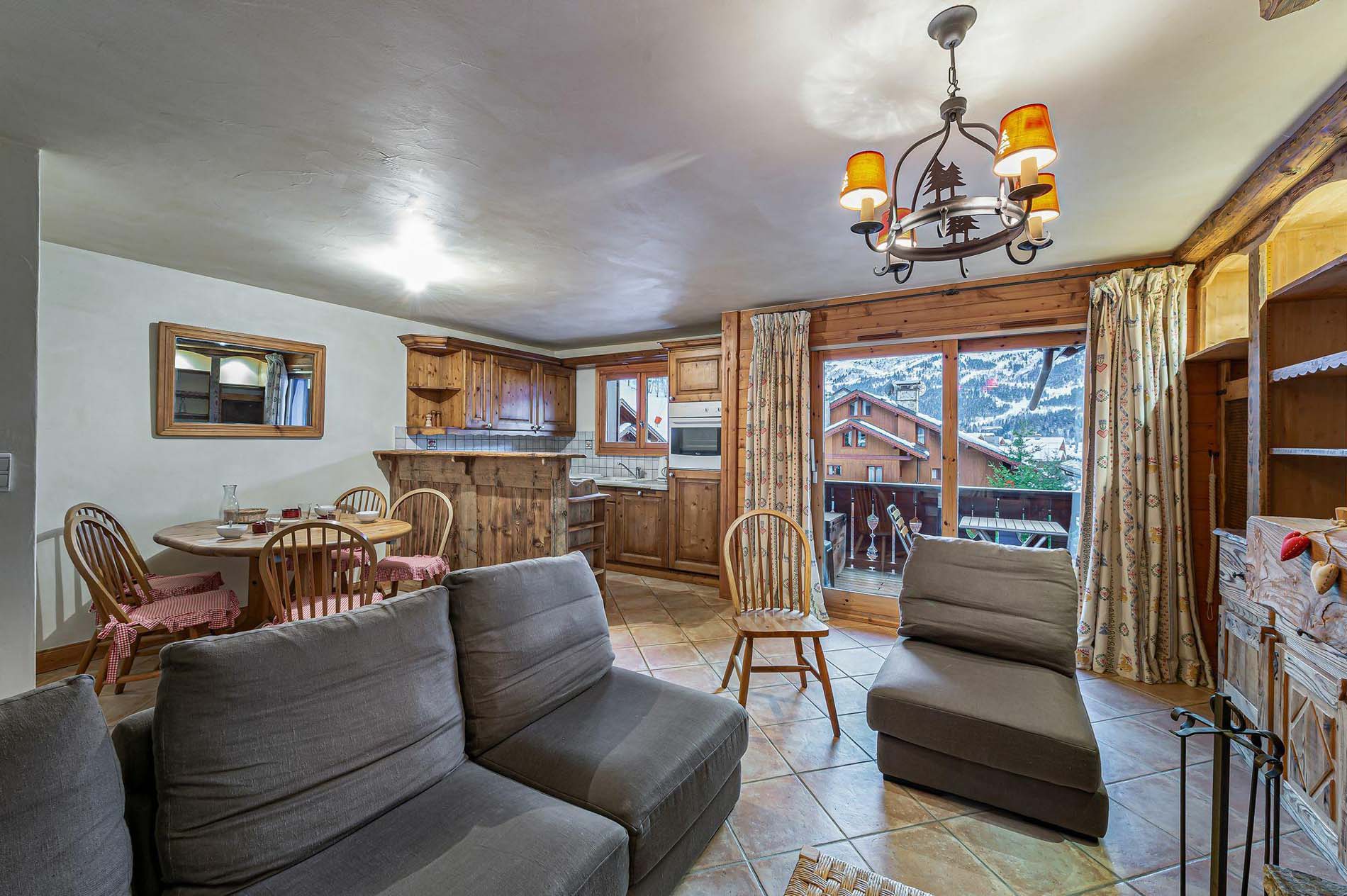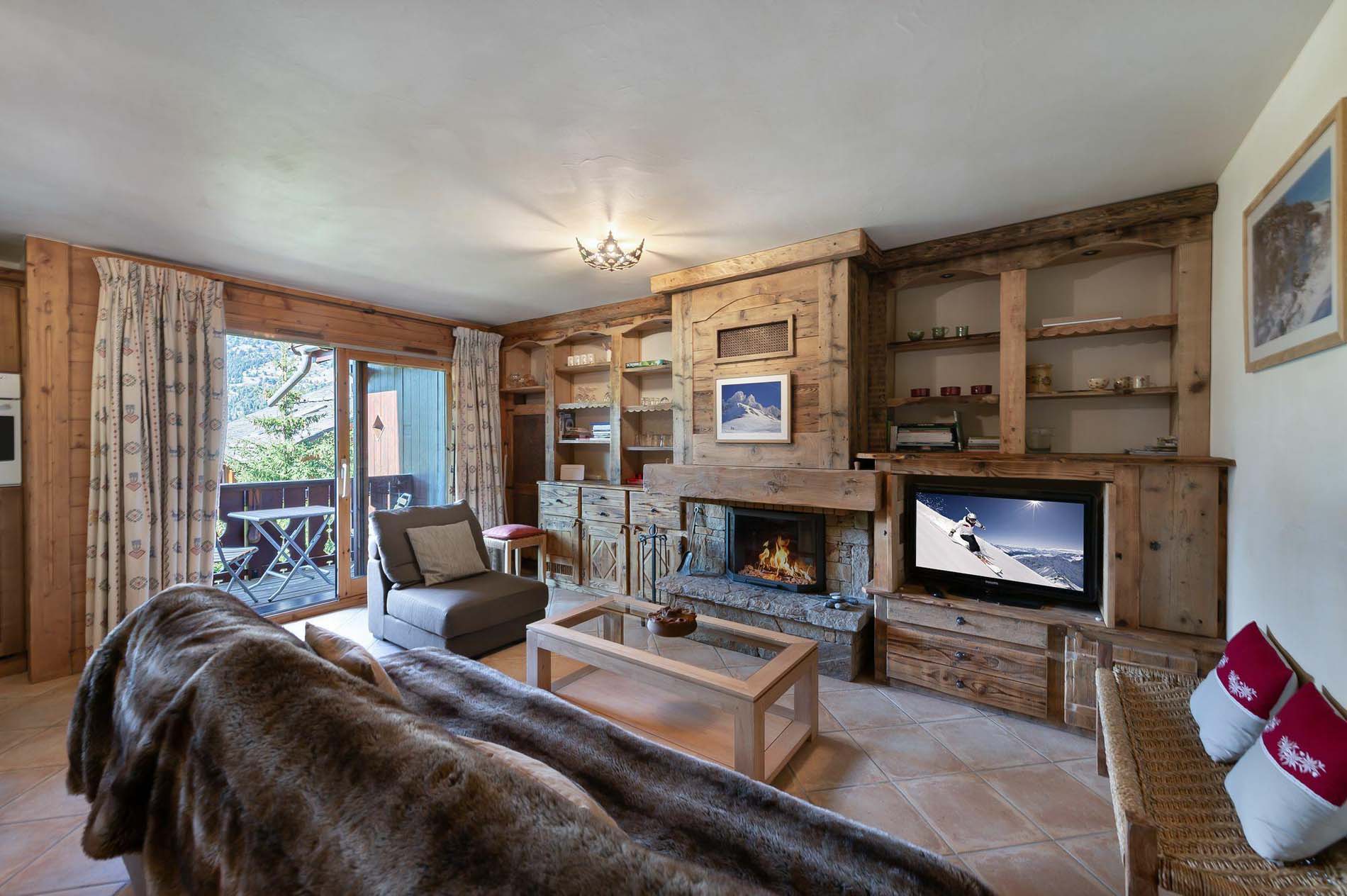 Living and dining room with balcony, terrace, TV lounge and fireplace.