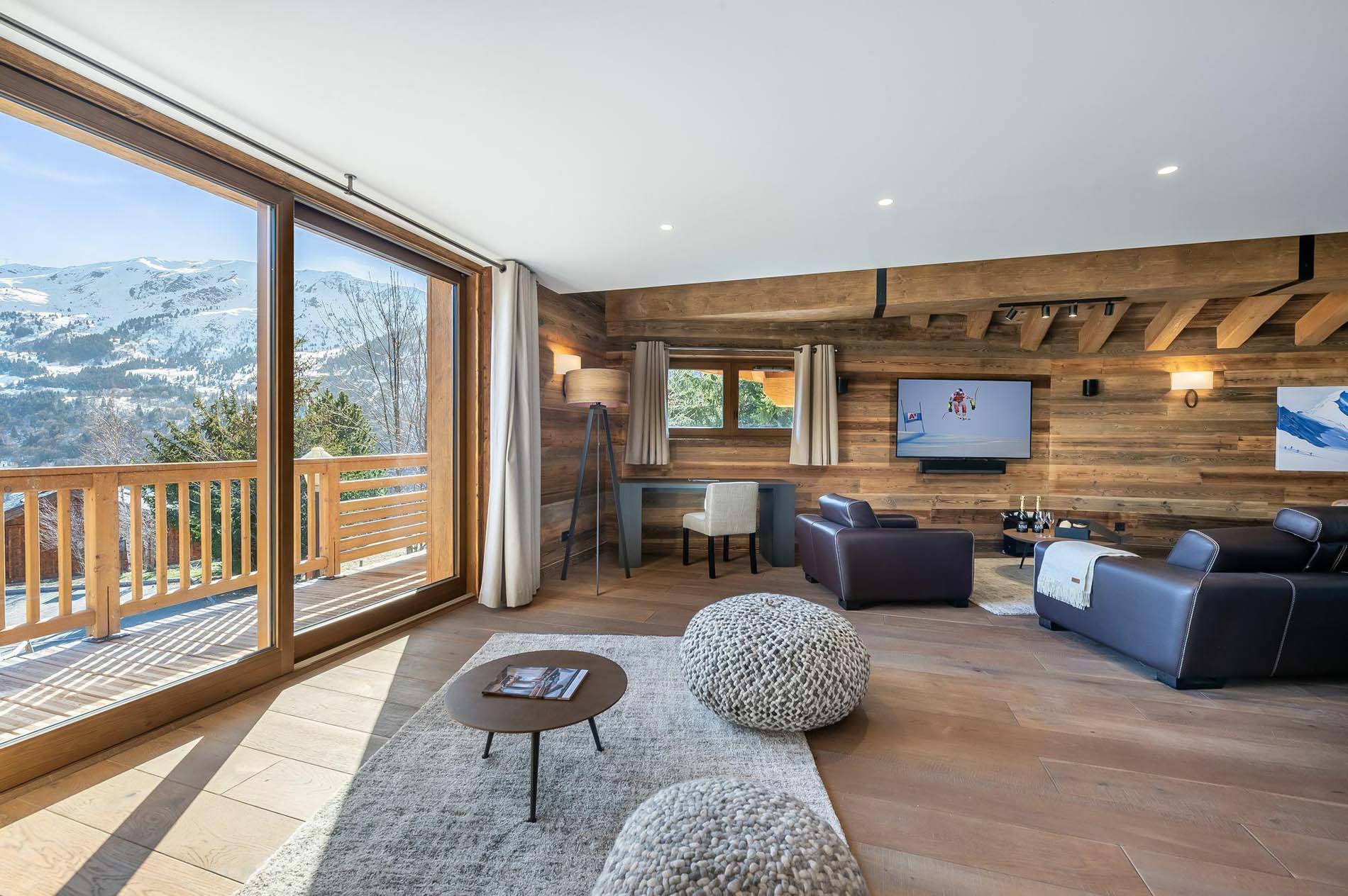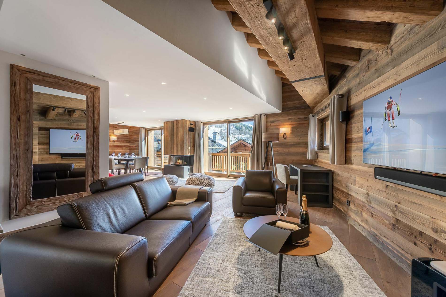 Living and dining room with balcony, office, fireplace and TV lounge.